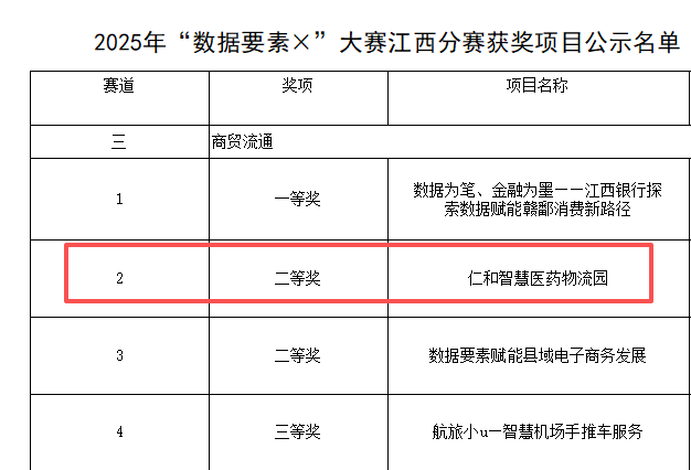 以數(shù)字賦能打造智慧醫(yī)藥物流領(lǐng)域新標(biāo)桿 ——仁和智慧醫(yī)藥物流園項目榮獲2025“數(shù)據(jù)要素×”大賽江西省二等獎