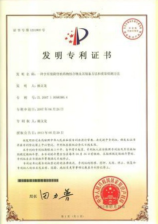 一種含有塞隆骨的藥物組合物及其制備方法和質量控制方法發明專利證書 發布時間: 2019年12月18日 11:47:32 閱讀量: 9,628 下一篇:一種桂龍咳喘寧片的分析方法發明專利證書上一篇:一種化積顆粒的分析方法發明專利證書