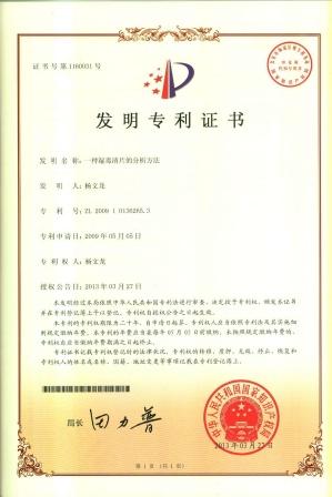 一種濕毒清片的分析方法發明專利證書 發布時間: 2019年12月18日 11:52:17 閱讀量: 11,572 下一篇:一種清火膠囊內容物的水分含量的分析方法發明專利證書上一篇:一種小兒風熱清顆粒的分析方法發明專利證書